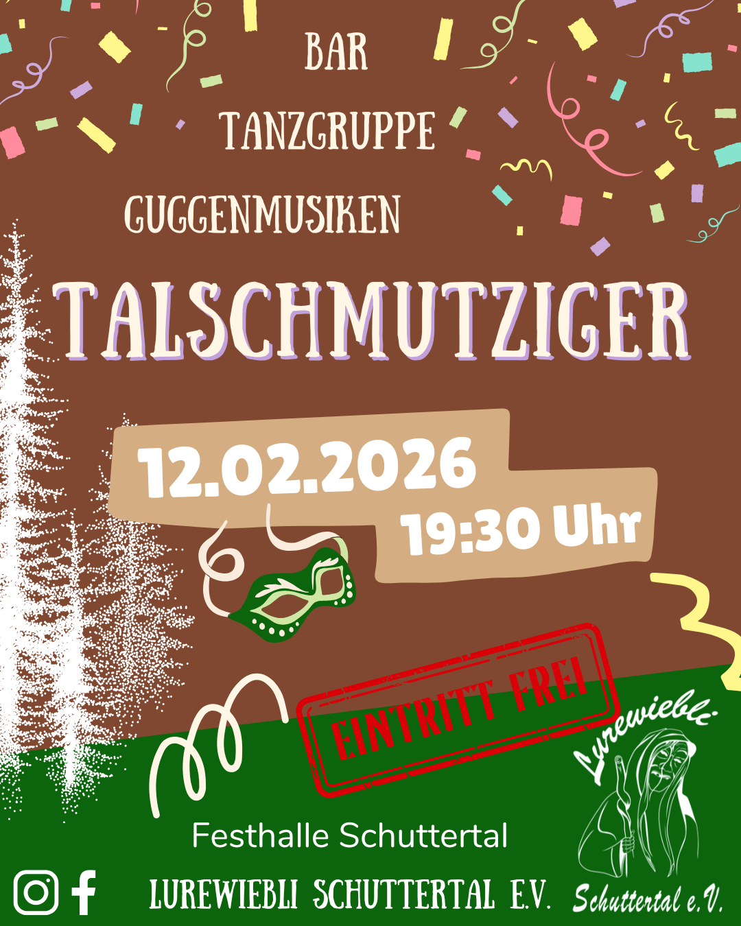 Jedes Jahr am Schmutzigen Donnerstag findet am Abend unsere eigene Veranstaltung der "Talschmutzige" in der Festhalle Schuttertal statt. Zudem steht 2026 unser großes 22jähriges Jubiläum an.